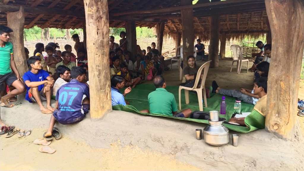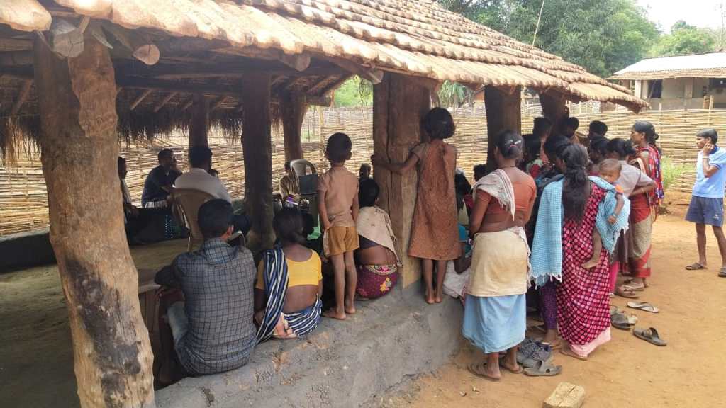 The vaccination camps were held on the lines of election exercise. It would have three components. First, an intense awareness campaign would take place in each village on Friday, May 28th. The administration team along with all the Patwari, Kotwals, and persons with influence in the area would travel to each village and organize meetings in the Ghotuls, the traditional meeting halls of the Madias. The traveling itself was dicey as our vehicle crossed at least five flowing rivulets, removed heavy stones along the forest trail and was stuck multiple times on a hilly and inaccessible terrain. All the villagers were informed in advance about the meeting and times were communicated by kotwals on foot the previous day. The first meeting was held at Fodewada, a hamlet of around 30 houses. The ‘ice-breaking’ session, as Tehsildar Anmol Kamble liked to refer it to, was done by talking about general issues faced by the villagers. It was key to establishing some rapport with the villagers. This was followed by transitioning to the topic of health and Covid. A video of local leaders and influencers like Prakash Amte ji, who has a very recognizable face in Bhamragad was shown to all. It instantly struck a chord with many of them as all the influencers spoke in their language, explaining Covid and how vaccination could protect them. Afterwards, we took the questions of each villager with much patience. In the classic dialectic method, which is still practiced in this area, both sides presented arguments. One of the village seniors wanted us to visit the nearby water source first and address the water problem as well. She led the way as we trekked almost a kilometer in deep jungle to learn that she had been ferrying water on foot for all her life. It was her chance to have us feel the problems she lived everyday. The meetings went much beyond the Covid as they enabled us to note many problems faced by these inaccessible areas. By the end of the day, the team noticed that it had taveresed over 10 kilometers on foot while walking through these villages. Eventually, home visits and Ghotul meetings ensured that all the villages were convinced to get vaccination by the end of the long but fruitful day.